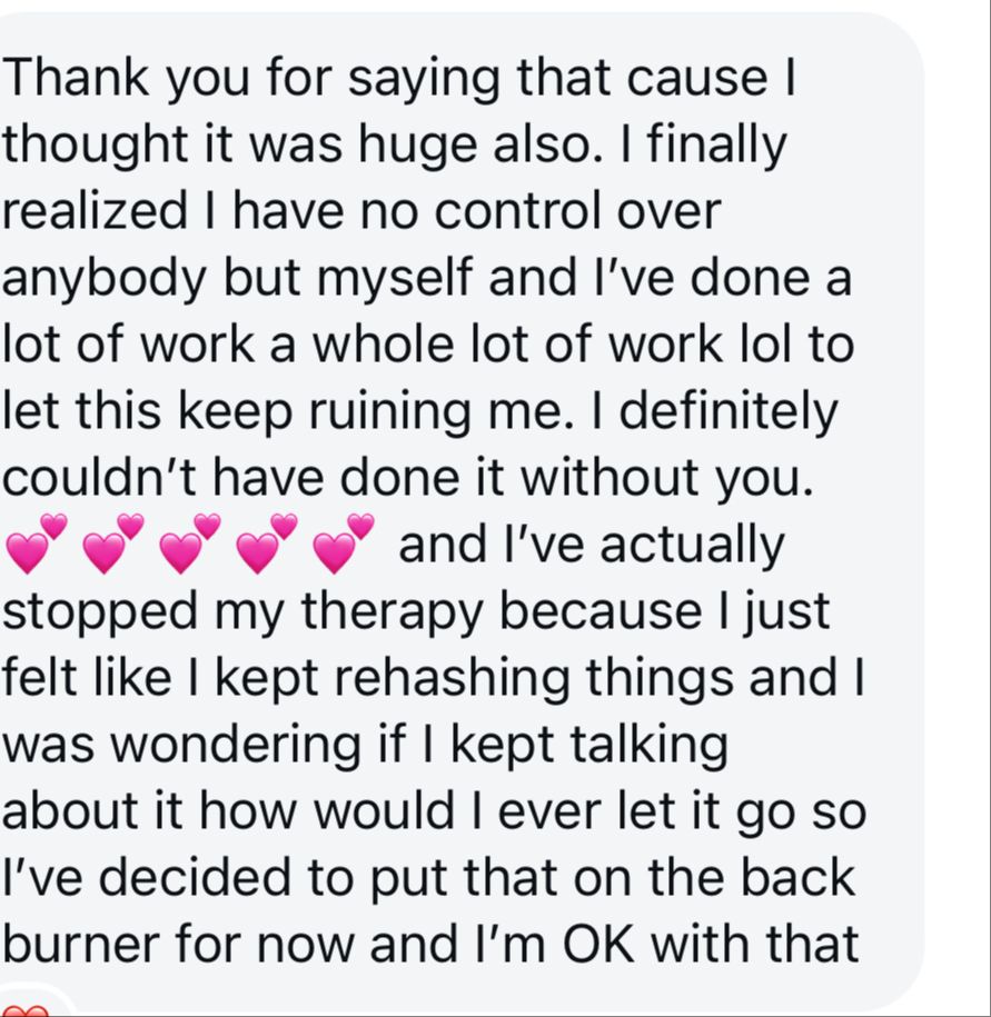 You helped me change the trajectory of not just my life, but my marriage, my other relationships, and the home I raise our children in."