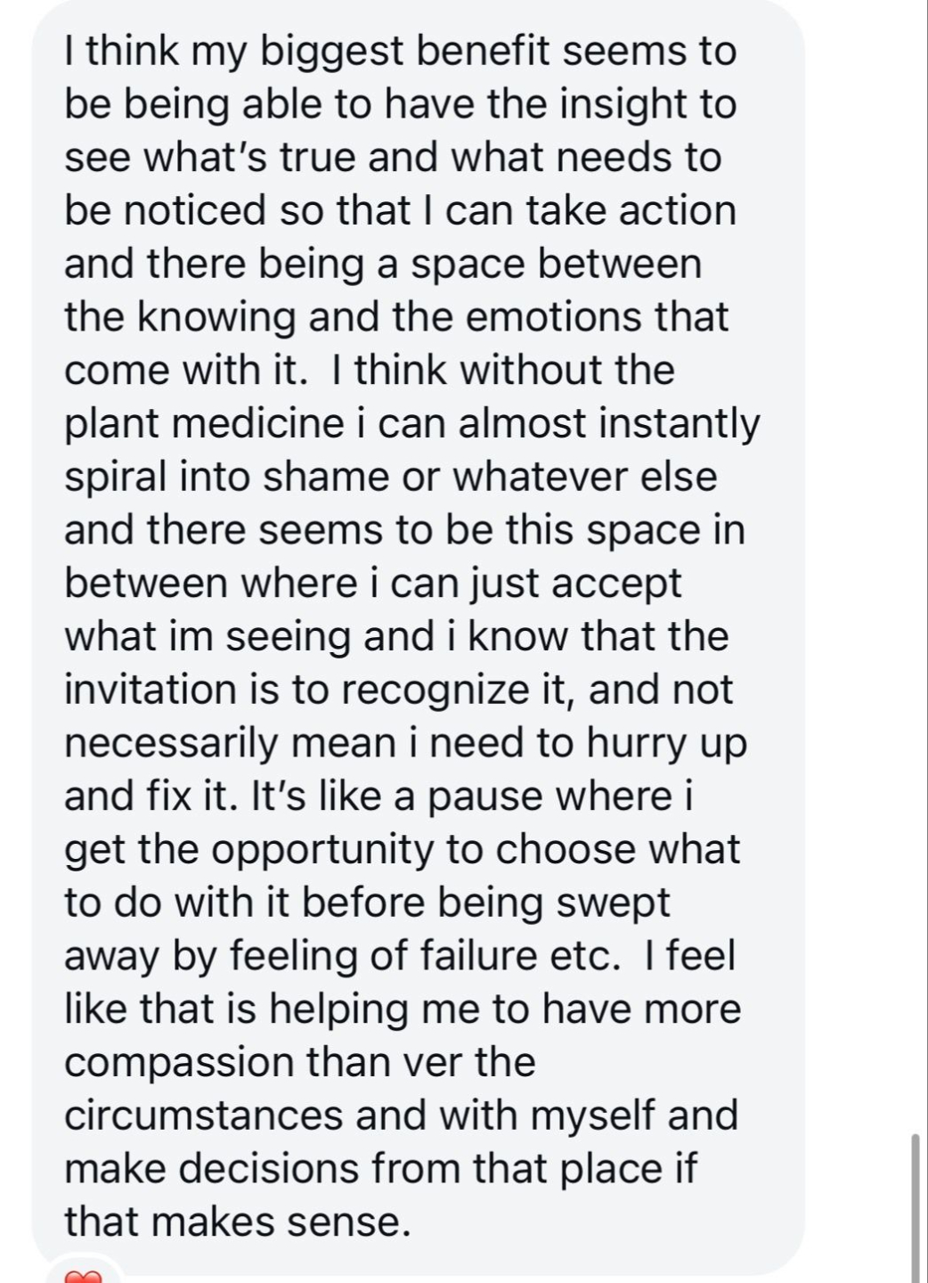 "Julie makes micro-dosing approachable and not scary. It's something I was very scared to do and she made it easy and calming. Nothing has changed my life this much. Ever. I've done tons of therapy, tons of programs, read tons of books, done all the things... and this one clicked. This came at the perfect time to synthesize all the things I knew but didn't know how to apply. This was honestly's a God's send."